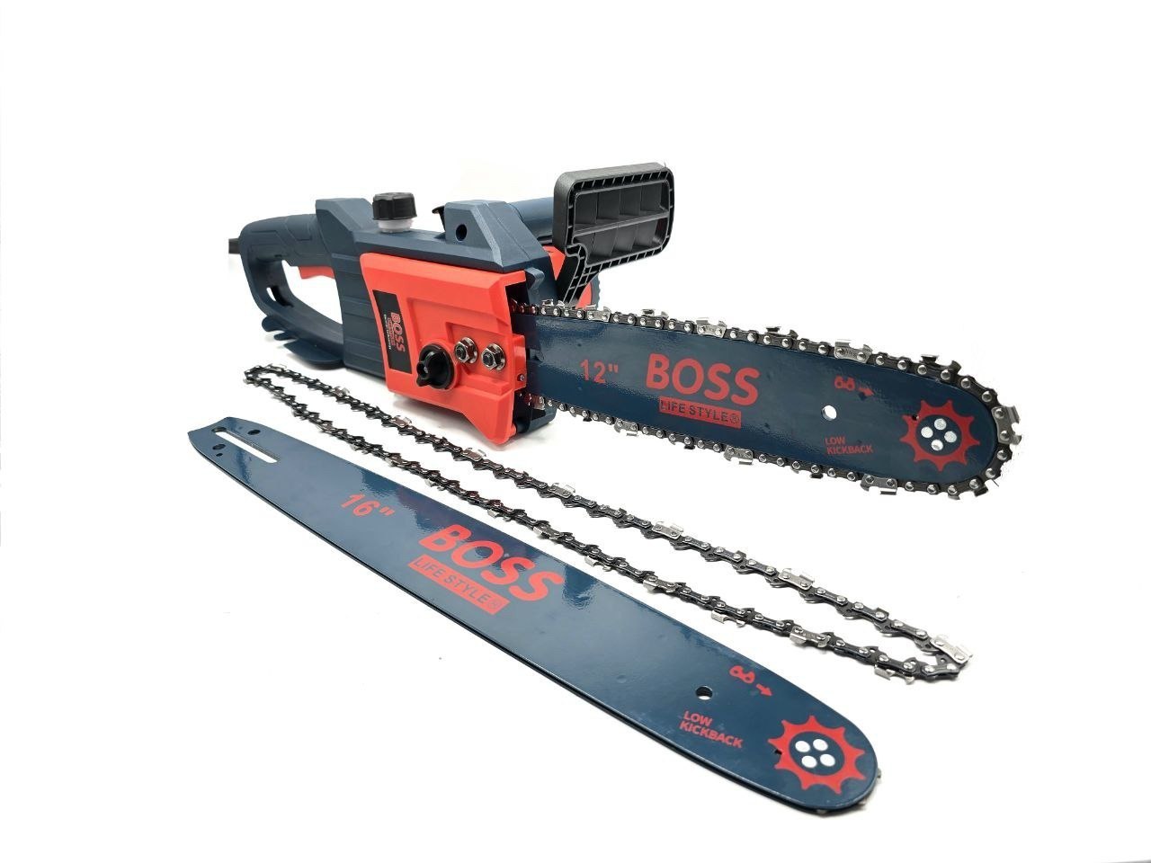 ⭐ اره زنجیری برقی ۳۰ و ۴۰ سانت دو ساطور باس ✔ دارای دو عدد تیغه به طول ۳۰ و ۴۰ سانت ✔ سیستم پاشش روغن ✔۲۵۰۰ وات ✔ سیم پیچ تمام مس ✔ خوش دست